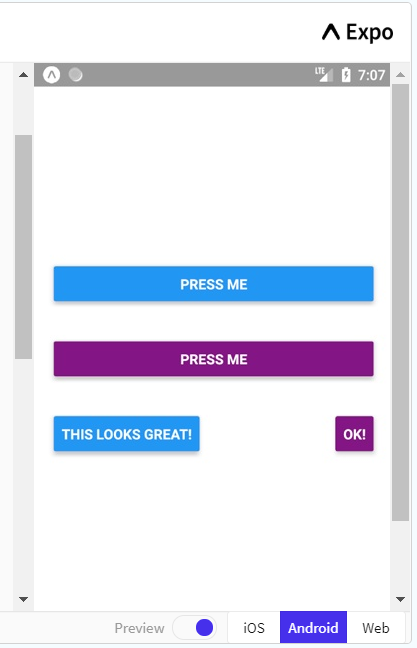 The example begins with the creating of the ButtonBasics class. It immediately defines the action when a button is pressed, which is to produce an alert. This is followed by the rendering of the buttons on the page. The onPress property tells the button to run the following code upon being pressed and in this case it is referring to the _onPressButton defined earlier in the code. title refers to the text on the button and you can also define the colour of the button.