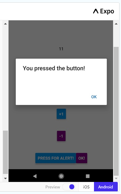 Alert.alert('You pressed the button!')