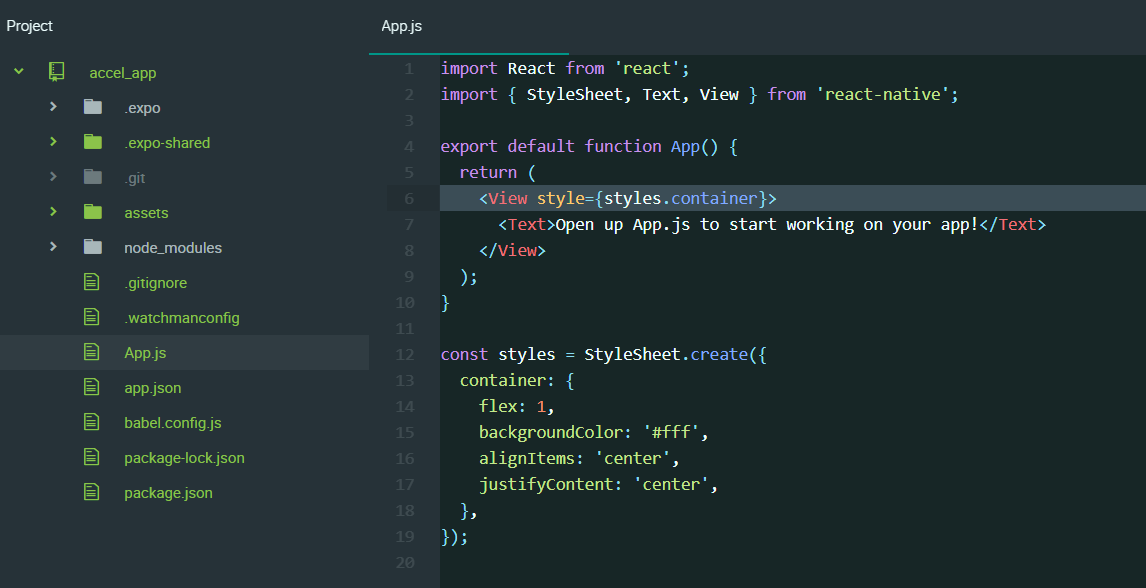 I’ve already gone ahead and set up my app project using Expo and this is the current state of it: